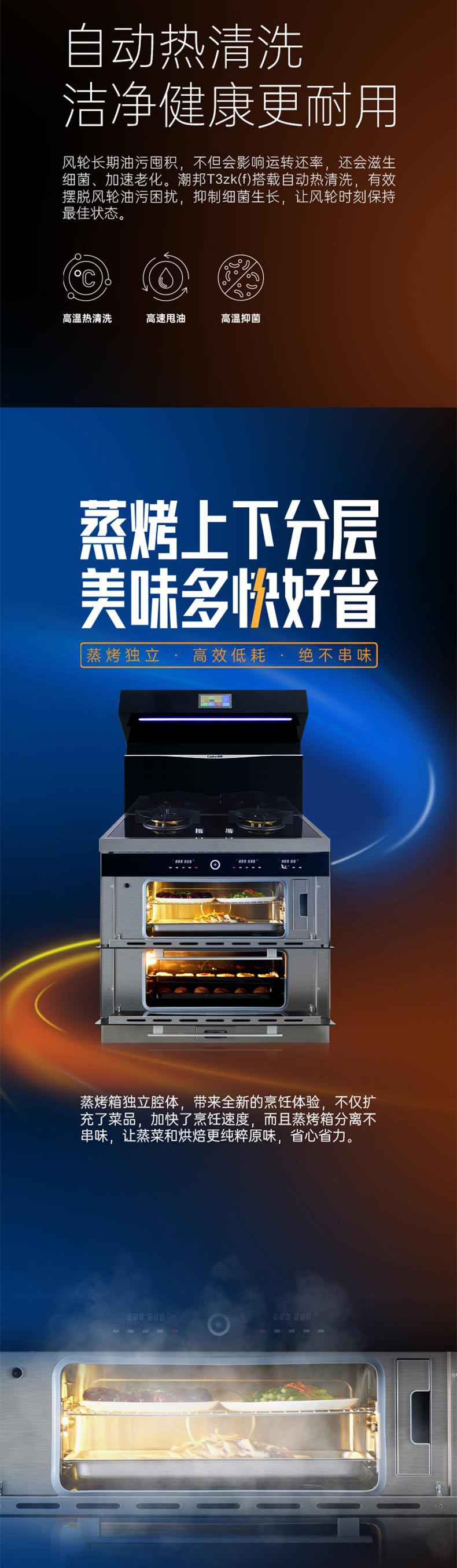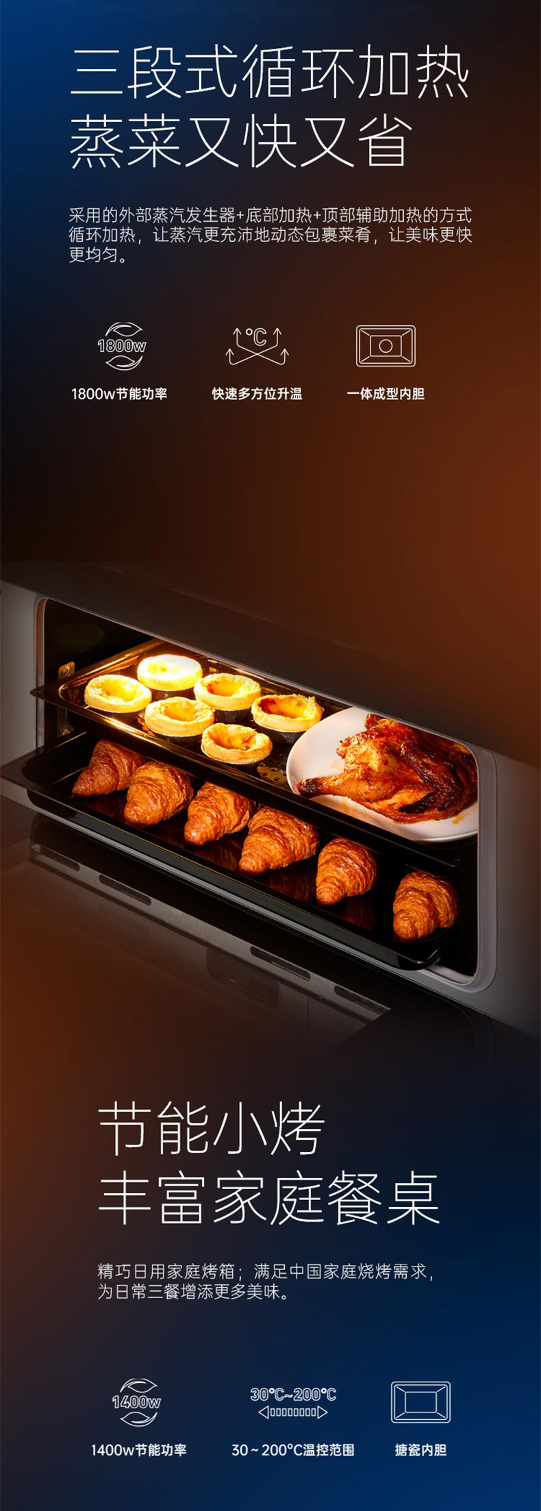 智能防干燒,雙腔蒸烤,4 8kW勁火。